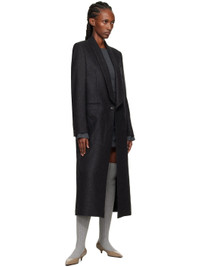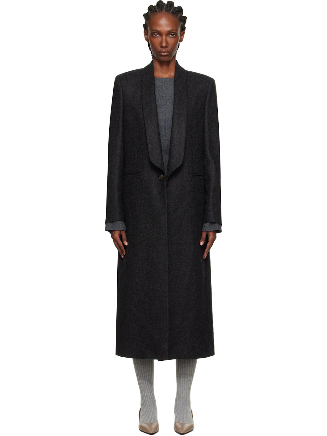Virgin wool-blend melton coat. · Water-repellent · Shawl lapel · Button closure · Welt pockets at front · Buttoned surgeon's cuffs · Central vent at back hem · Welt pocket at interior · Full satin lining Supplier color: Granite water repellent Body: 80% virgin wool, 20% polyamide. Lining: 55% viscose, 45% acetate. Made in Portugal 252803F059001