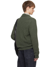 Knit alpaca-blend cardigan. · Rib-knit spread collar, hem, and cuffs · Button closure · Mother-of-pearl hardware Supplier color: Moss green fuzzy Body: 55% alpaca, 30% polyamide, 15% wool. Trim: 100% mother of pearl. Made in Portugal 252803M200007