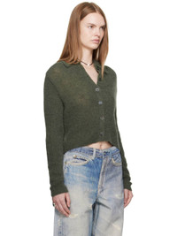 Rib-knit alpaca-blend cardigan. · Spread collar · Button closure · Extended sleeves · Mother-of-pearl hardware Supplier color: Moss green fuzzy alpaca 55% alpaca, 30% polyamide, 15% wool. Made in Portugal 252803F095005