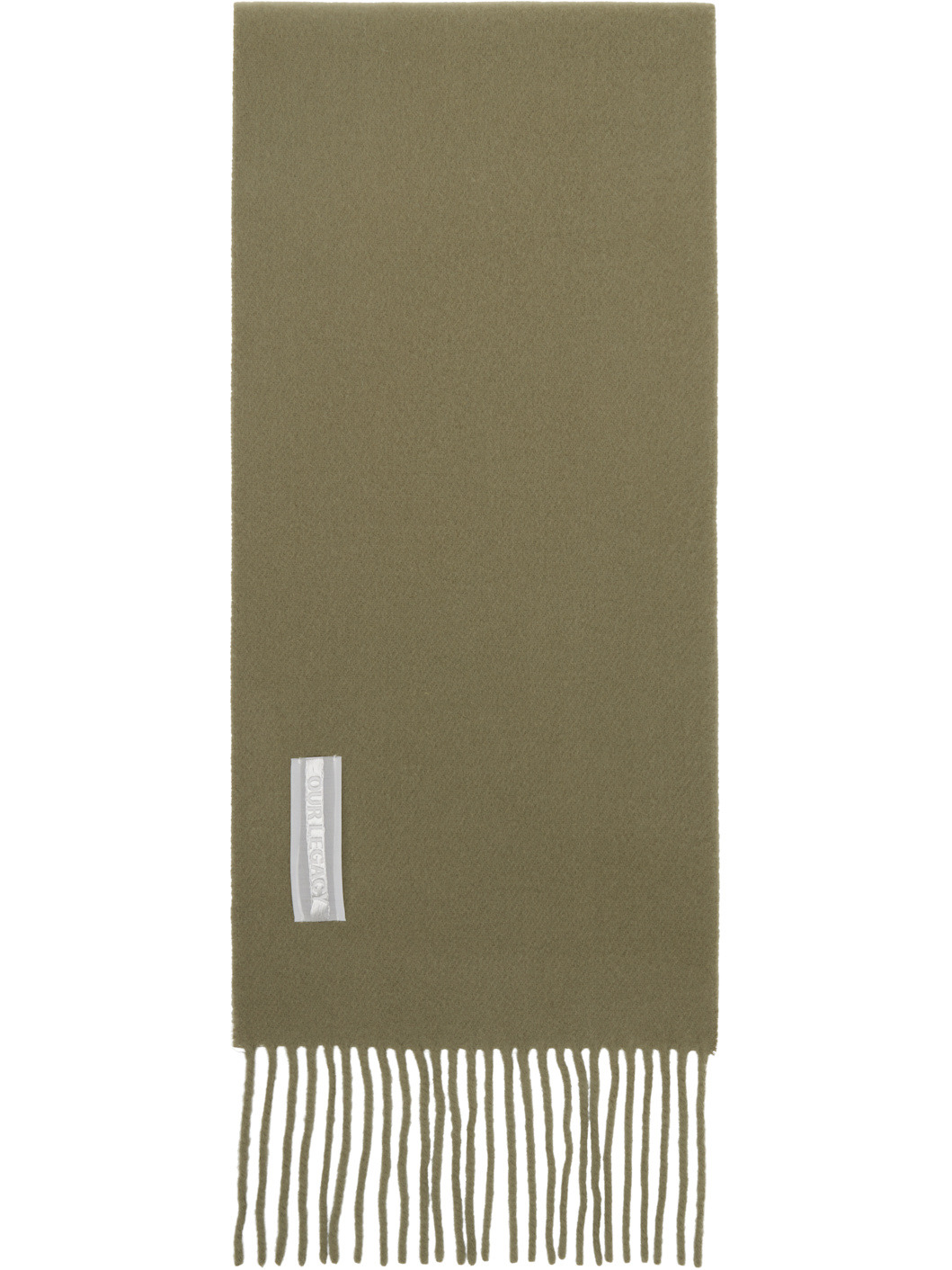 Rectangular wool flannel scarf. · Logo patch at face · Fringed detailing at ends · L74" x W10" Supplier color: Olive double wool 100% wool. Made in Italy 252803M150006