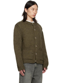 Heavyweight knit wool- and alpaca-blend cardigan. · Rib-knit crewneck, hem, and cuffs · Button closure · Patch pockets at front · Corozo hardware Supplier color: Olive mega alpaca 70% wool, 30% alpaca. Made in Portugal 252803M200002
