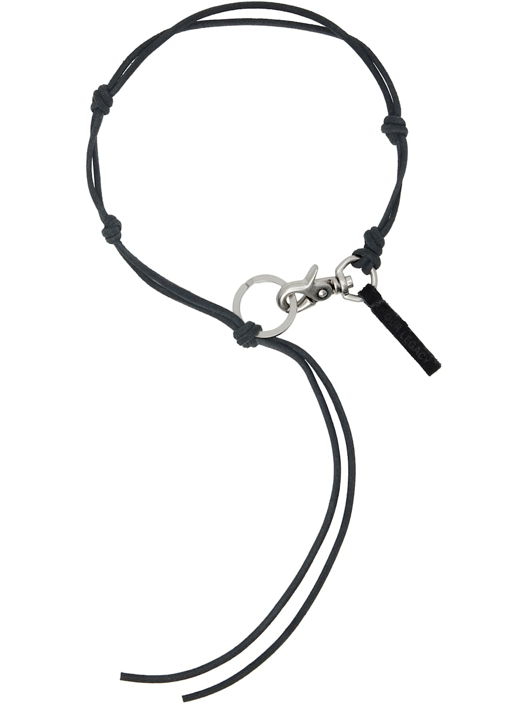 Grained leather cord necklace in black. · Knotted detailing at length · Logo-engraved key ring · Hand-stitch leather tab at lobster-clasp fastening · Silver-tone hardware · L30" Supplier color: Black leather Leather, metal. Made in Portugal 252803M145011