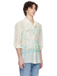 Semi-sheer cotton- and silk-blend poplin shirt. · Spread collar · Button closure · Graphic printed at front · Vented side seams · Buttoned barrel cuffs · Box pleat at back yoke · Mother-of-pearl hardware Supplier color: Sea view print cotton silk 69% cotton, 31% silk. Made in Portugal 252803M192002