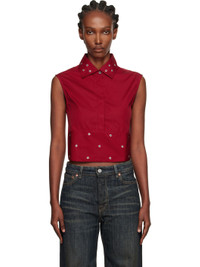 Cotton poplin top. · Spread collar · Metal eyelets at collar and hem · Concealed button closure · Open back · Self-tie fastening at back hem Supplier color: Lipstick Red Super Poplin Body: 100% cotton. Trim: 100% mother of pearl. Made in Portugal 252803F107002