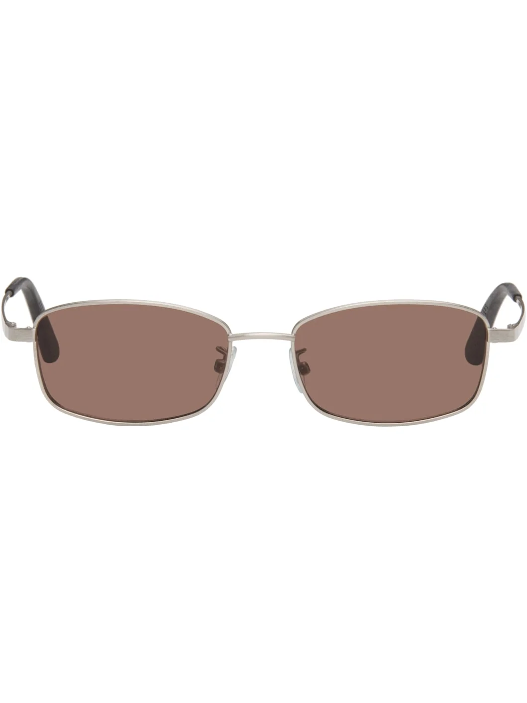 Rectangular metal-frame sunglasses. · Handcrafted · Brown lenses, category 3 · Adjustable rubber nose pads · Logo engraved at temple · Textured rubber temple tips · Includes case Supplier color: Silver hawk Metal, rubber. Made in Italy 261803M134006
