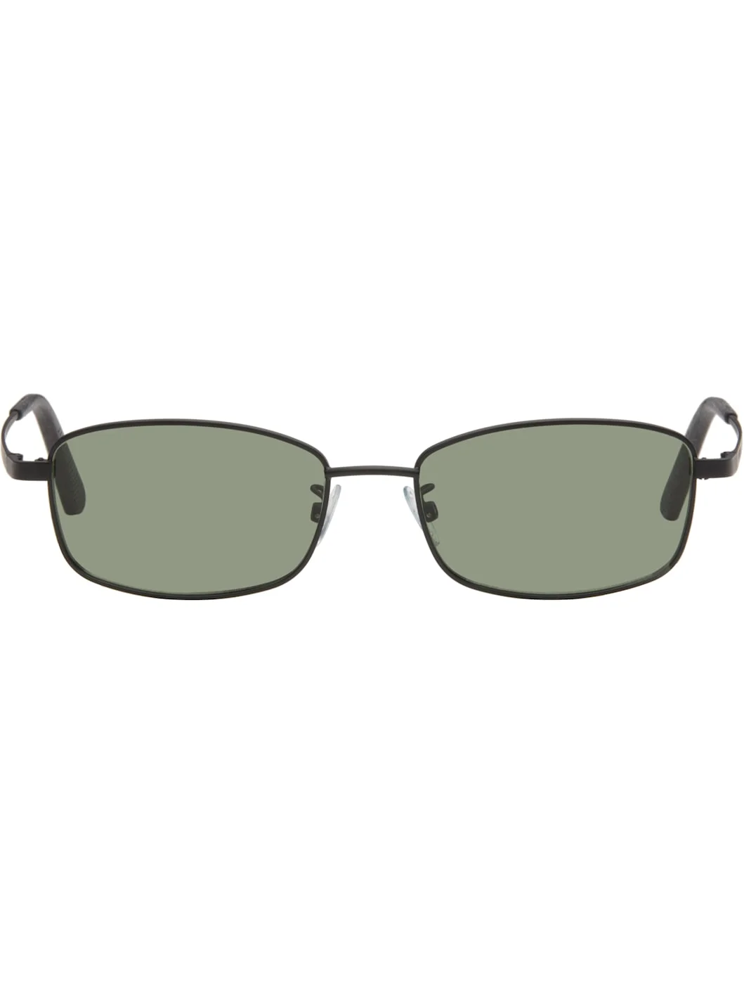 Rectangular metal-frame sunglasses. · Handcrafted · Green lenses, category 2 · Adjustable rubber nose pads · Logo engraved at temple · Textured rubber temple tips · Includes case Supplier color: Carbon murmur Metal, rubber. Made in Italy 261803M134007