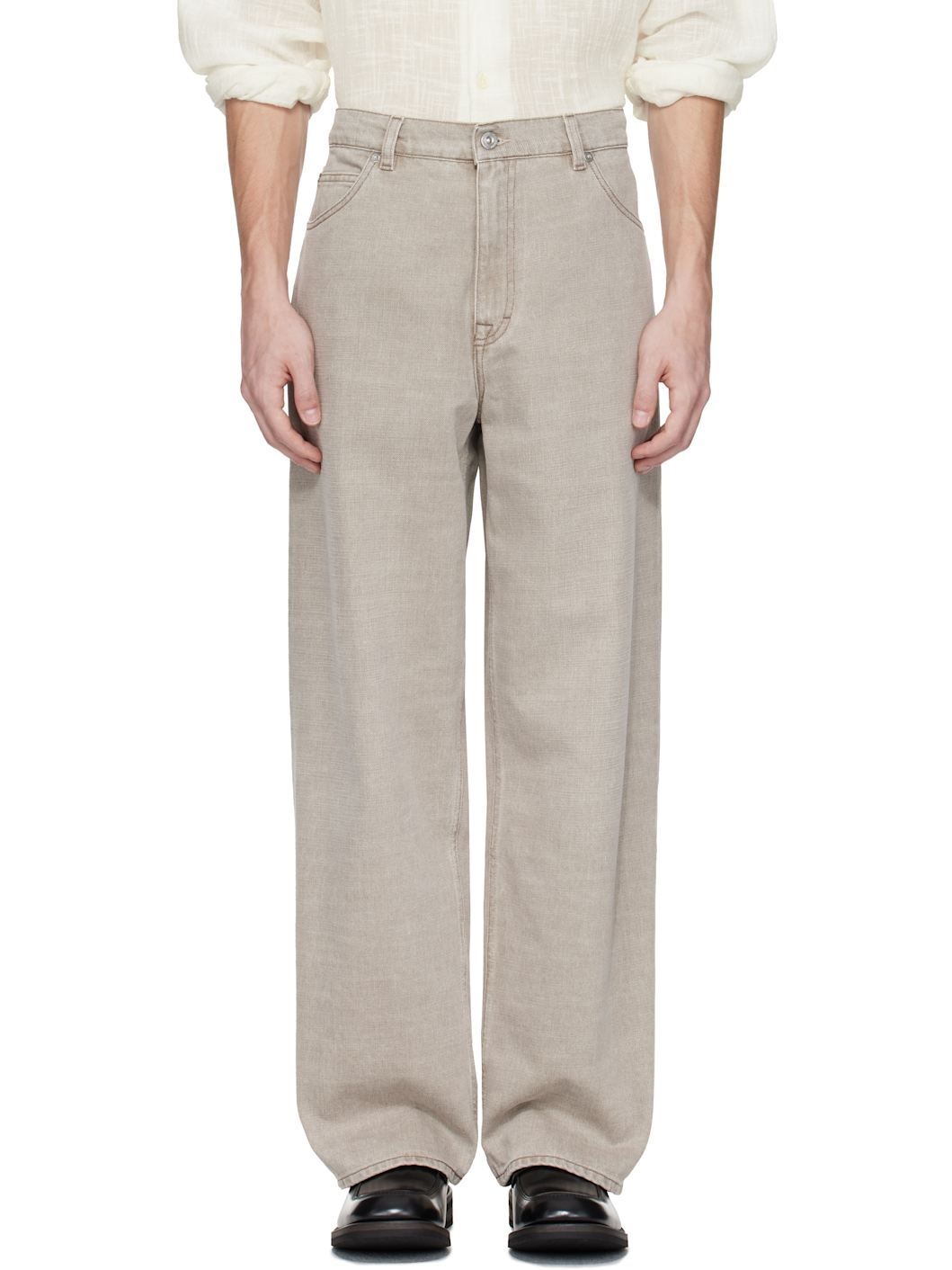 Pigment-dyed non-stretch denim jeans. Subtle fading throughout. · Loose-fit and wide-leg · High-rise · Belt loops · Five-pocket styling · Zip fly · Rubberized logo patch at back waistband · Logo-engraved silver-tone hardware · Contrast stitching in brown Supplier color: Vienna beige wash 100% cotton. Made in Portugal 252803M186000