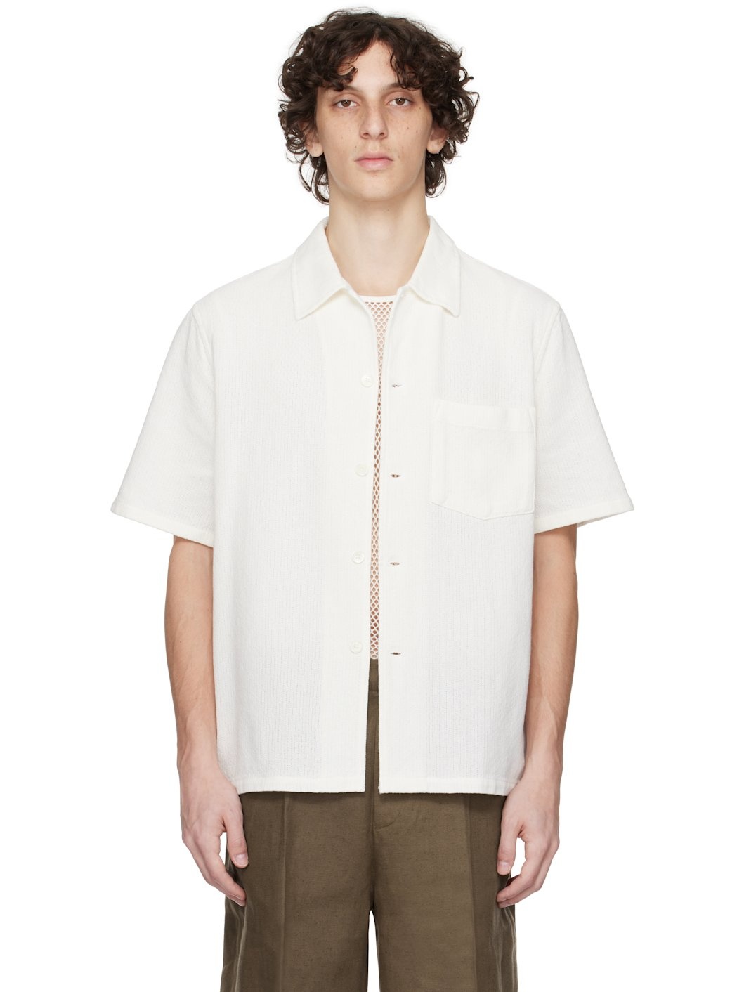 Semi-sheer plain-woven cotton shirt. · Spread collar · Button closure · Patch pocket at chest · Mother-of-pearl hardware Supplier color: White crochet weave 100% cotton. Made in Portugal 251803M192019