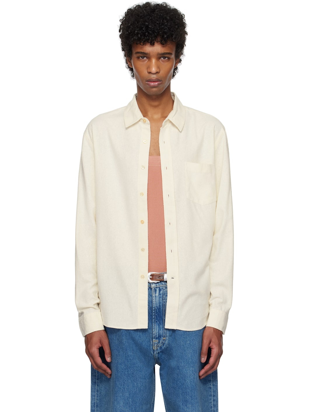 Pigment-dyed plain-woven silk shirt. Pilling throughout. · Slim-fit · Spread collar · Button closure · Patch pocket · Shirttail hem · Pleated single-button barrel cuffs · Twin pleats at back yoke · Mother-of-pearl hardware Supplier color: White silk 100% silk. Made in Portugal 251803M192016