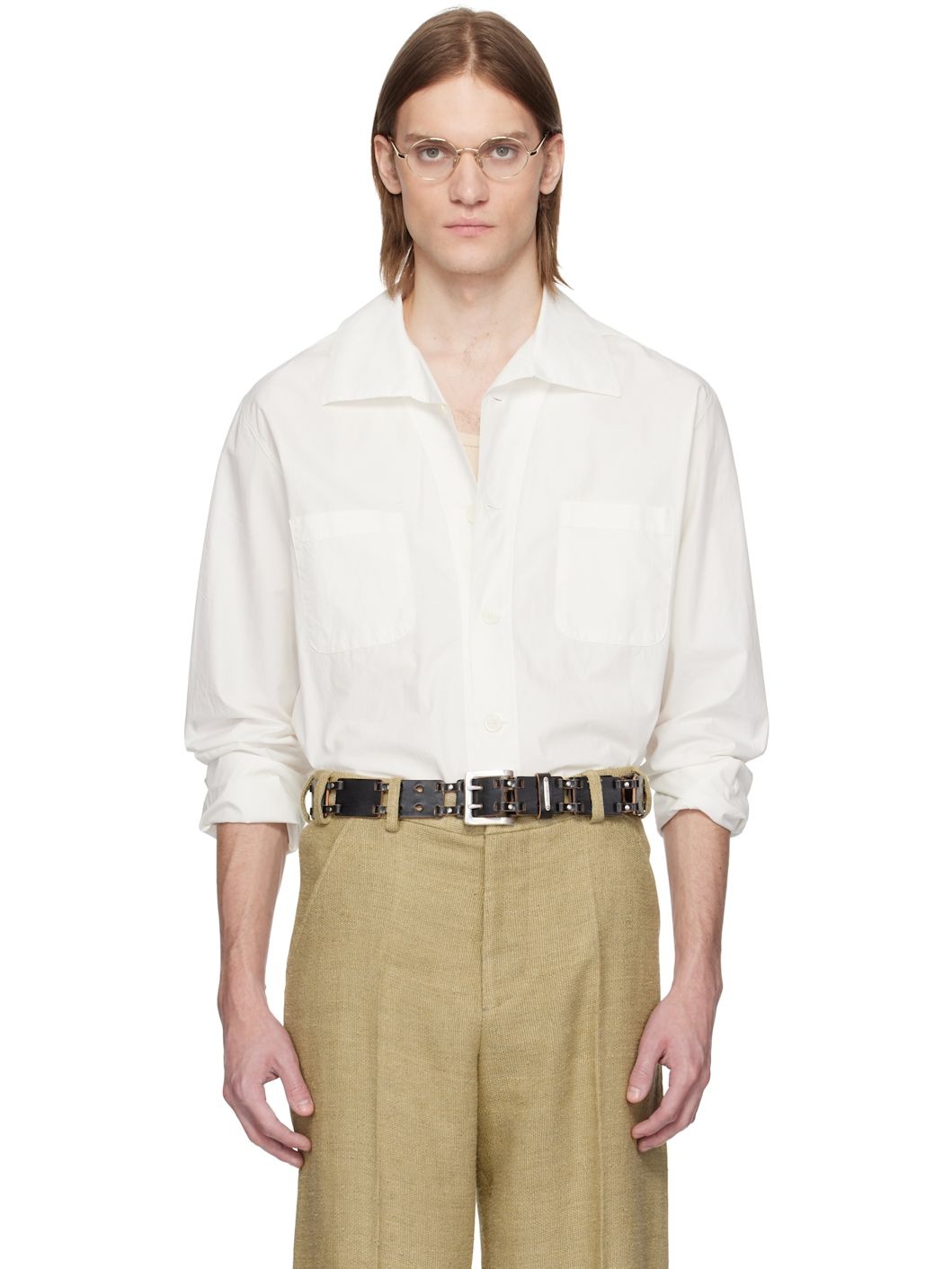 Cotton poplin shirt. · Spread collar · Button closure · Patch pockets at chest · Shirttail hem · Single-button barrel cuffs · Box pleat at back yoke · Mother-of-pearl hardware Supplier color: White 100% cotton. Made in Portugal 251803M192011