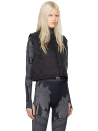 Quilted nylon taffeta vest. · Rib knit stand collar · Zip closure · Embroidered logo at chest · Zip pockets · Bungee-style drawstring at hem · Welt pocket at interior · Full nylon satin lining Supplier color: Black off Body: 100% polyamide. Trim: 98% polyamide, 2% elastane. Lining: 100% polyamide. Made in Morocco 241695F068000