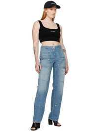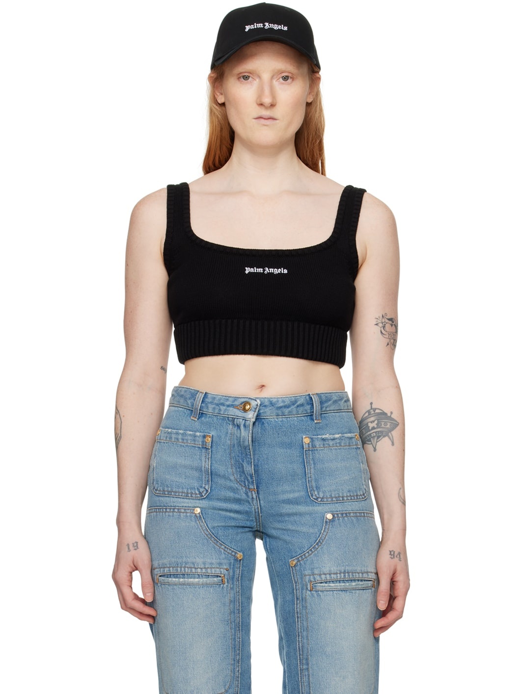 Knit cotton tank top. · Rib knit scoop neck and cropped hem · Logo embroidered at front · Fixed shoulder straps Supplier color: Black/Off white 100% cotton. Made in Romania 241695F080000