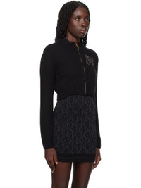 Knit nylon- and wool-blend sweater. · Rib knit crewneck, cropped hem, and cuffs · Zip closure · Crystal-cut logo at chest and back · Crystal-cut logo graphic at back Supplier color: Black/Silver 35% polyamide, 30% wool, 30% viscose, 5% cashmere. Made in Italy 241695F097002
