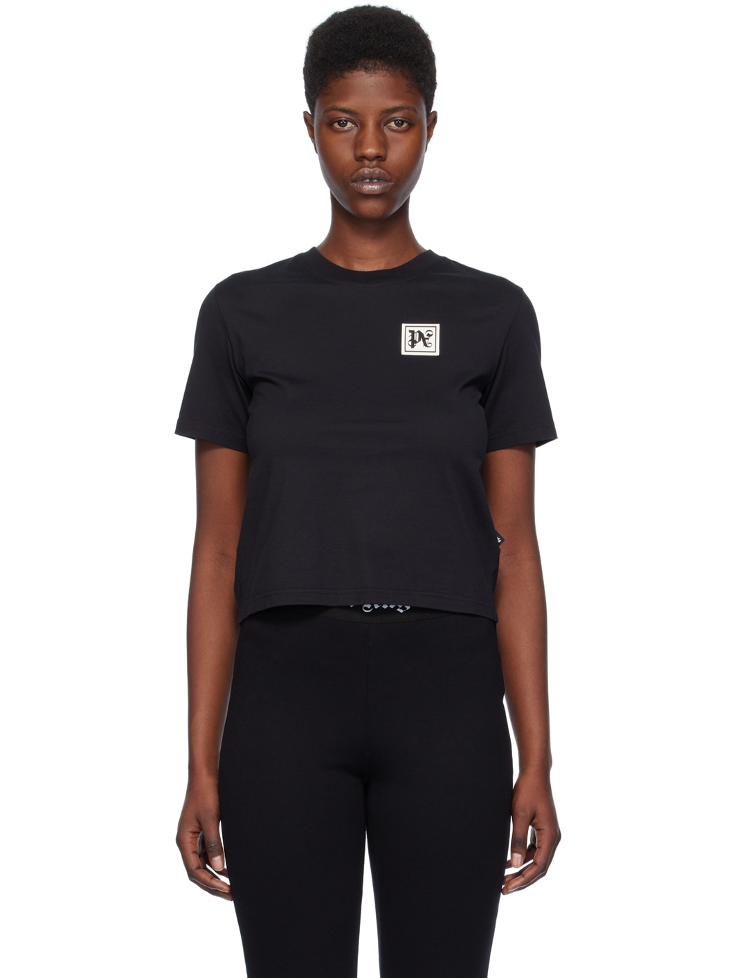 Cotton jersey T-shirt. · Rib knit crewneck · Logo bonded at chest · Logo flag at side seam · Text bonded at back Supplier color: Black/White 100% cotton. Made in Italy 241695F110001