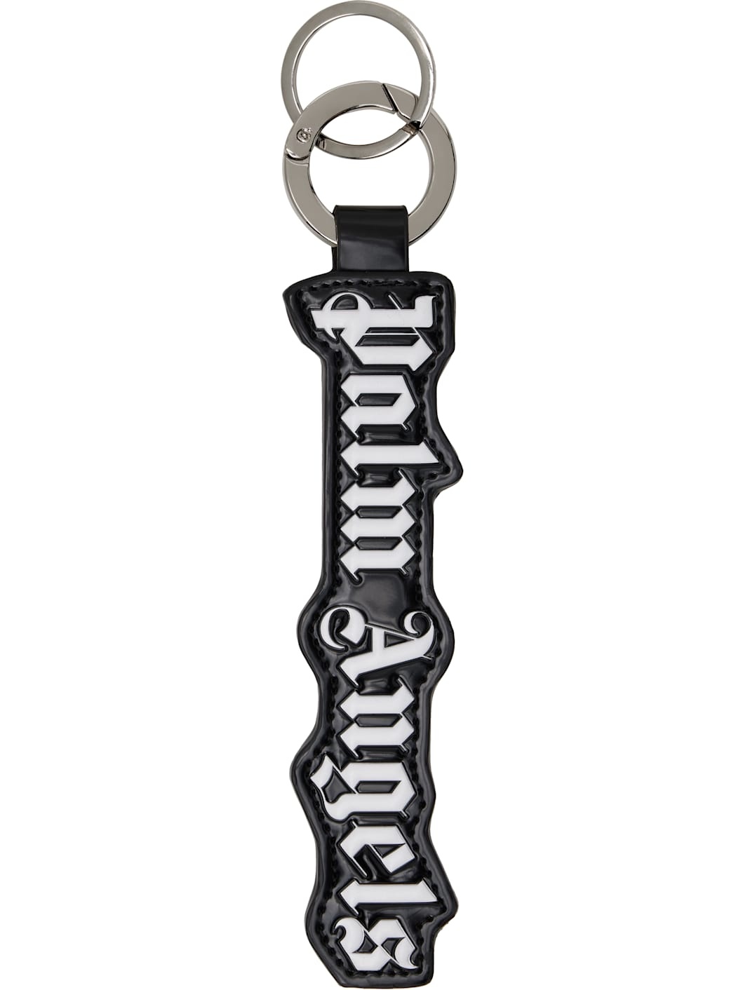 Keychain in silver tone. · Hinged-ring and keyring at top · Patent faux-leather logo charm at drop · H5.75" x W1.5" Supplier color: Black/White Synthetic, textile. Made in Italy 242695M148000