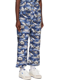 Cotton twill trousers. Graphic pattern printed throughout. · Concealed drawstring at elasticized waistband · Three-pocket styling · Logo flag at front Supplier color: Blue/Black 100% cotton. Made in Italy 231695M190018