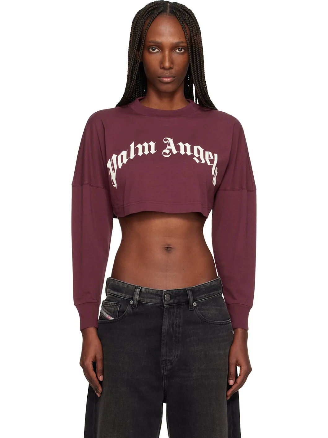 Cotton jersey T-shirt. · Rib-knit crewneck and cuffs · Logo printed at front · Cropped hem · Dropped shoulders Supplier color: Burgundy/Off white 100% cotton. Made in Portugal 252695F110002