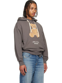 French terry hoodie. · Drawstring at hood · Boucle graphic applique with studs at front · Text and logo bonded at kangaroo pocket · Rib-knit hem and cuffs · Logo flag at side seam · Dropped shoulders Supplier color: Dark grey/Brown Body: 100% cotton. Trim 1: 92% cotton, 8% elastane. Trim 2: 58% cotton, 38% polyester, 2% brass, 1% wool, 1% acrylic. Made in Turkey 252695M202015