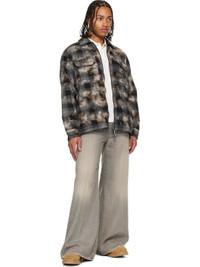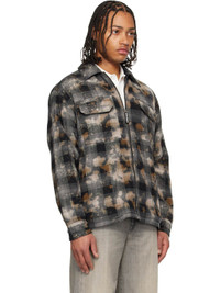 Padded cotton-blend flannel overshirt. · Check pattern and fading throughout · Spread collar · Zip closure · Flap pockets at chest · Seam pockets at waist · Vented side seams · Press-stud barrel cuffs · Logo printed at back hem · Full quilted nylon satin lining Supplier color: Grey/Off-white Body: 60% cotton, 40% polyester. Fill: 100% polyester. Lining: 100% polyamide. Made in Morocco 252695M180002