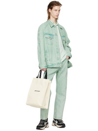 Overdyed non-stretch denim jacket. Fading and subtle distressing throughout. · Spread collar · Button closure · Flap and welt pockets · Single-button barrel cuffs · Logo embroidered at back yoke · Adjustable button tabs at back hem · Unlined · Logo-engraved silver-tone hardware Supplier color: Mint/Off-white 100% cotton. Made in Romania 241695M177001