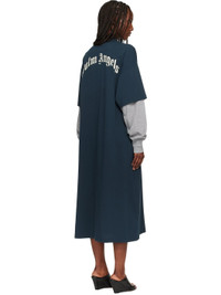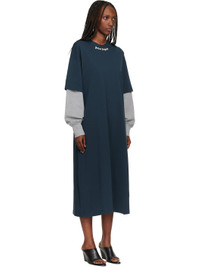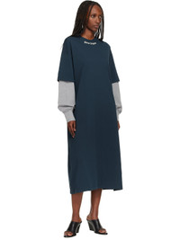 Cotton jersey maxi dress. · Rib-knit crewneck and cuffs · Raw edge at collar · Logo printed at front and back · Layered long sleeves Supplier color: Dark blue 100% cotton. Made in Turkey 252695F108001