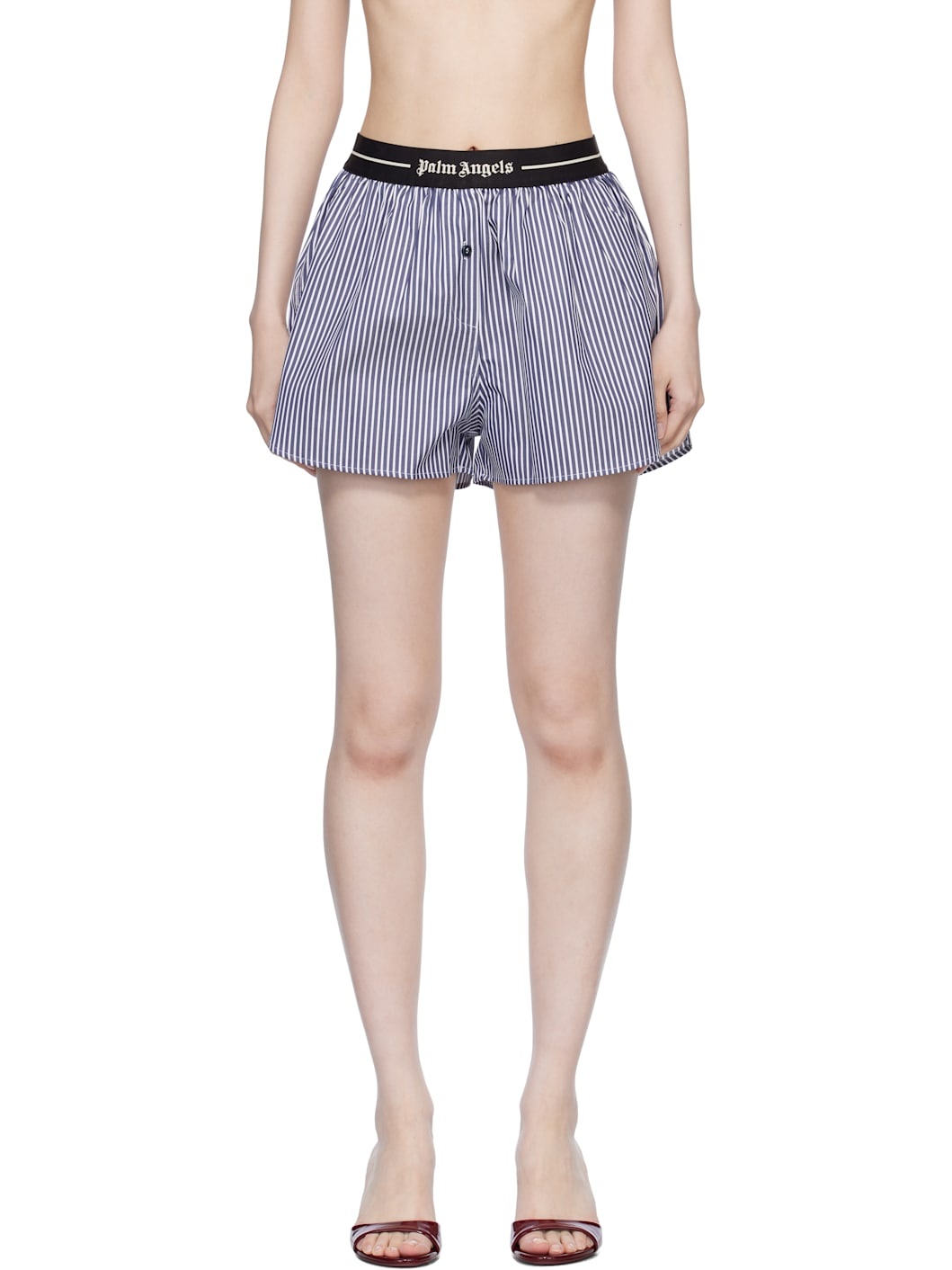 Cotton poplin shorts. Stripes throughout. · Logo-woven elasticized waistband · Mock button-fly · Vented cuffs Supplier color: Navy blue Body: 100% cotton. Trim: 91% polyester, 9% elastane. Made in Italy 251695F088002