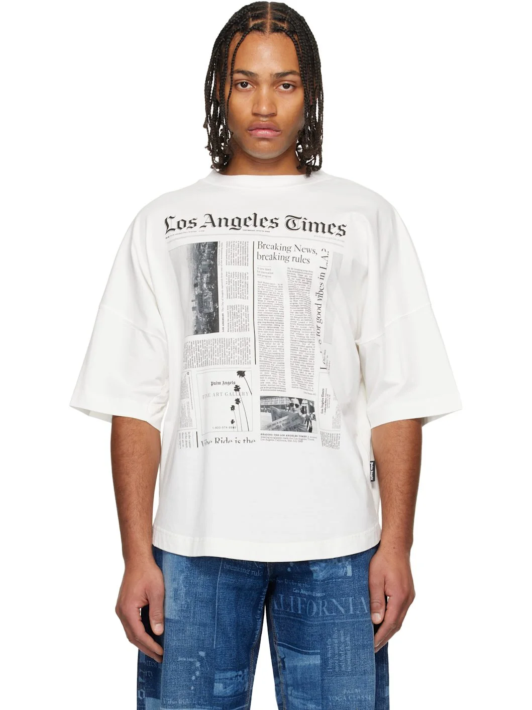 Cotton jersey T-shirt. · Oversized · Rib-knit crewneck · Text and graphics printed at front · Logo flag at side seam · Dropped shoulders · Logo printed at back Part of the Palm Angels x Los Angeles Times collaboration. Supplier color: Off white/Black 100% cotton. Made in Portugal 252695M213003