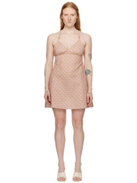 Plain-woven slub linen- and cotton-blend dress. Graphic pattern printed throughout. · V-neck · Logo hardware at criss-crossing shoulder straps · Concealed zip closure at back Supplier color: Pink/Yellow 55% linen, 45% cotton. Made in Italy 241695F052005