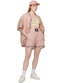 Plain-woven linen- and cotton-blend shorts. Paisley pattern printed throughout. · Logo patch at elasticized waistband · Two-pocket styling · Mock-fly · Piping at cuffs · Vent at outseams Supplier color: Pink/Black Body: 55% linen, 45% cotton. Trim: 100% cotton. Made in Italy 241695F088007