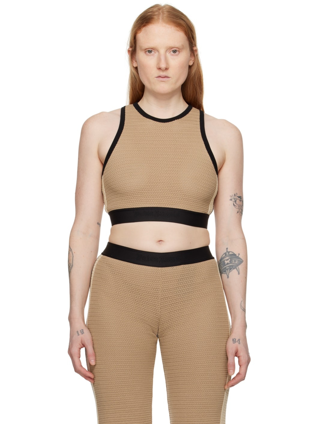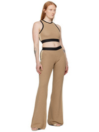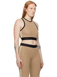 Knit cotton tank top. · Rib knit crewneck and armscyes · Jacquard logo at elasticized cropped hem · Stripes at side seams · Racer back Supplier color: Light brown/Black Body: 100% cotton. Trim: 80% polyester, 10% polyamide, 10% elastane. Made in Italy 241695F080002