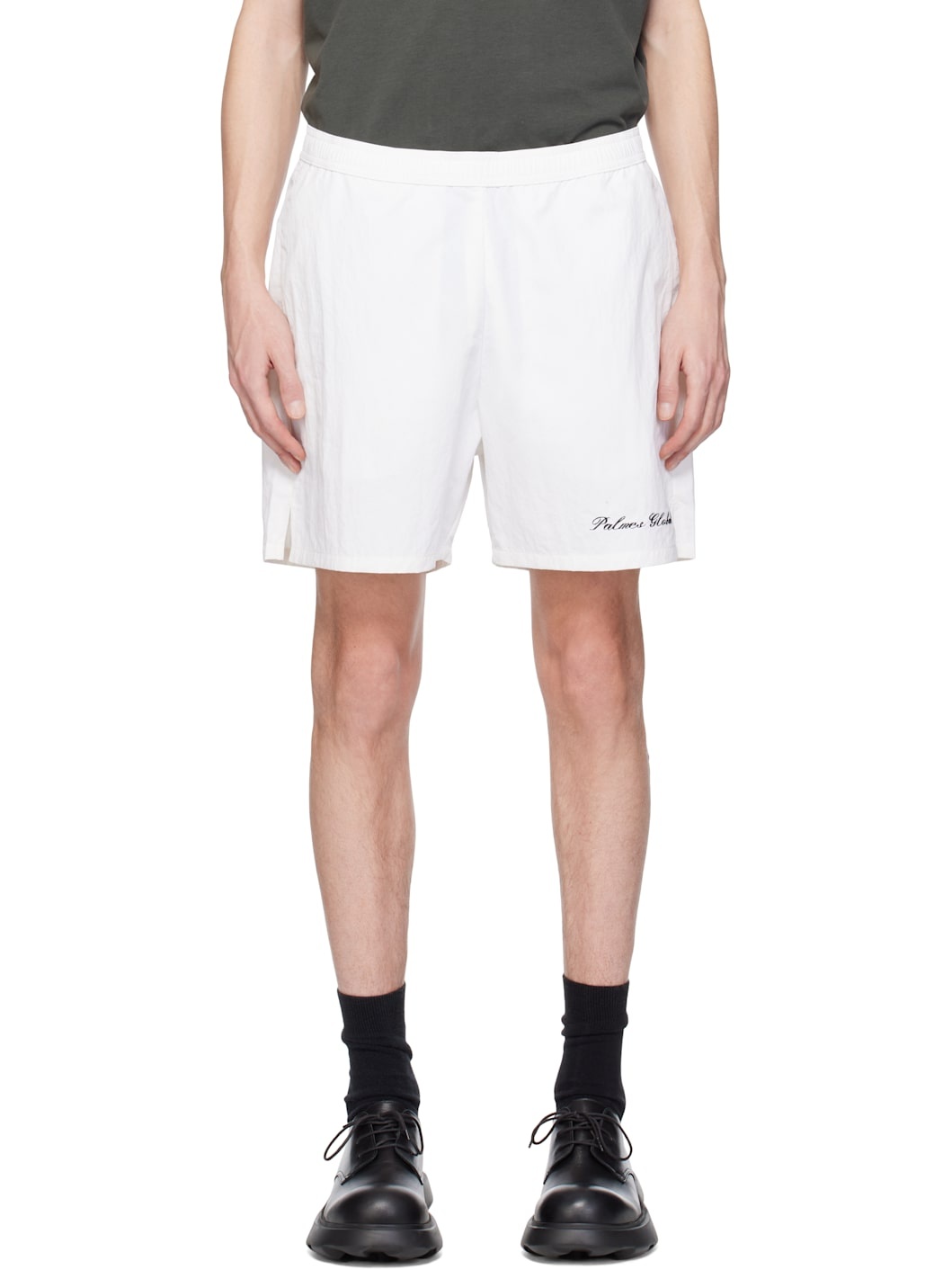 Polyester taffeta shorts. · Concealed drawstring at elasticized waistband · Two-pocket styling · Logo embroidered at leg · Vented cuffs Supplier color: White 100% polyester. Made in Taiwan, China 251963M193002