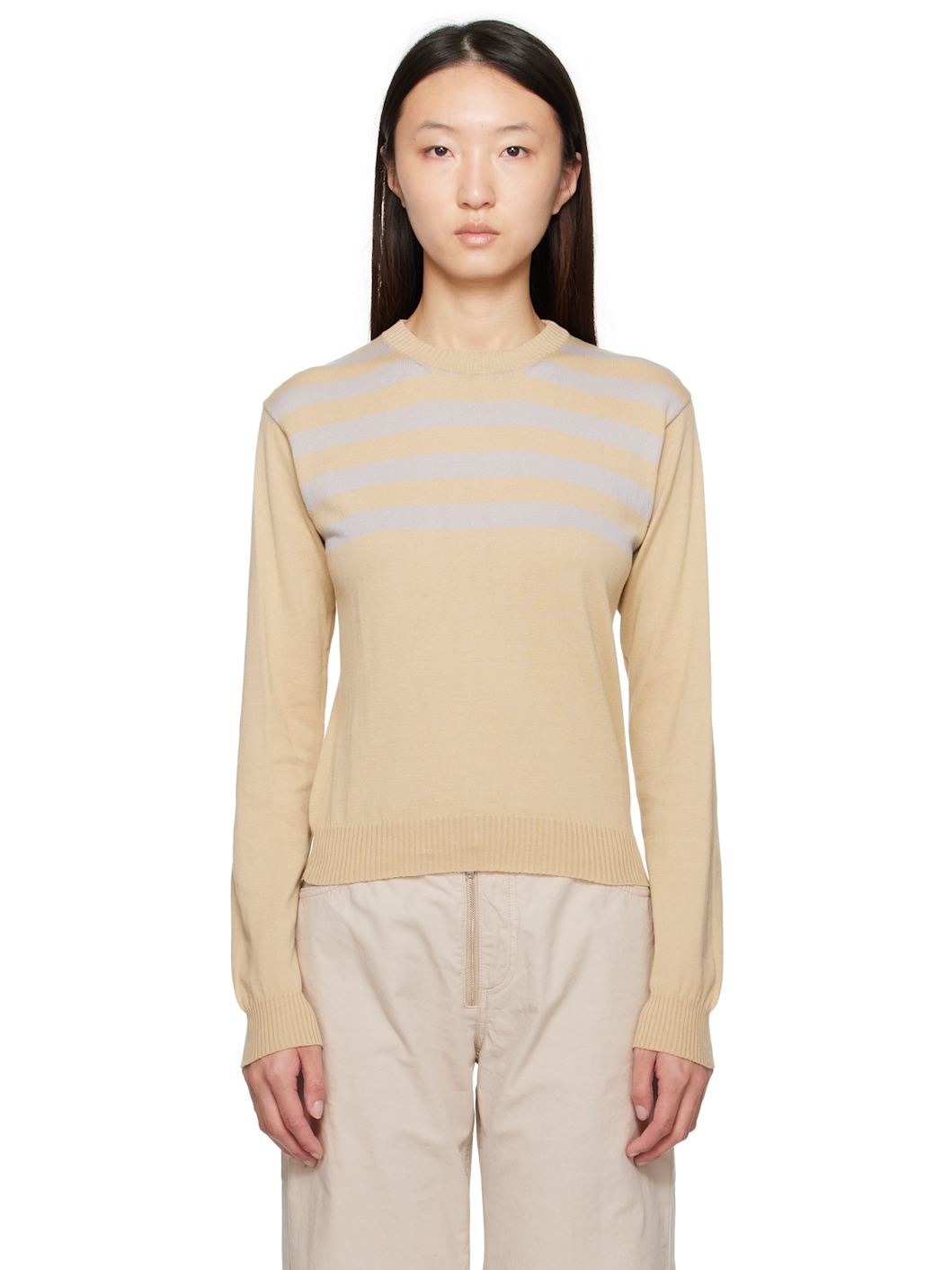 Mako cotton jersey sweater. · Striped throughout · Rib-knit crewneck, hem, and cuffs Supplier color: Ecru 100% mako cotton. Made in Spain 252648F096002