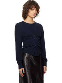Knit extrafine merino wool- and cashmere-blend sweater. · Mulesing-free wool · Rib-knit crewneck, hem, and cuffs · Button fastening at front · Dropped shoulders Supplier color: Navy 70% extrafine merino wool, 30% cashmere. Made in Spain 261648F096007