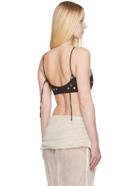 Plain-woven stretch recycled polyester- and merino wool-blend top. Metal eyelets throughout. · Scoop neck · Elasticized hem · Button closure at side seam · Adjustable spaghetti straps · Fully lined · Mother-of-pearl hardware · Mulesing-free wool Supplier color: Brown 51% recycled polyester, 43% merino wool, 6% elastane. Made in Spain 252648F111029