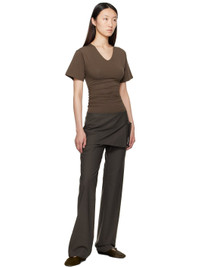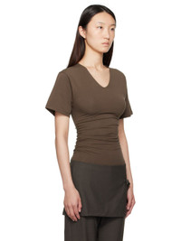 Stretch organic cotton jersey T-shirt. · V-neck · Ruching at side seams Supplier color: Brown 94% organic cotton, 6% elastane. Made in Portugal 252648F110024