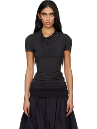Stretch micromodal jersey and knit merino wool T-shirt. · Mulesing-free wool · Cowl neck · Draping at waist and hem · Layered rib-knit hem Supplier color: Grey Body: 94% micromodal, 6% elastane. Trim: 100% merino wool. Made in Portugal 261648F110009
