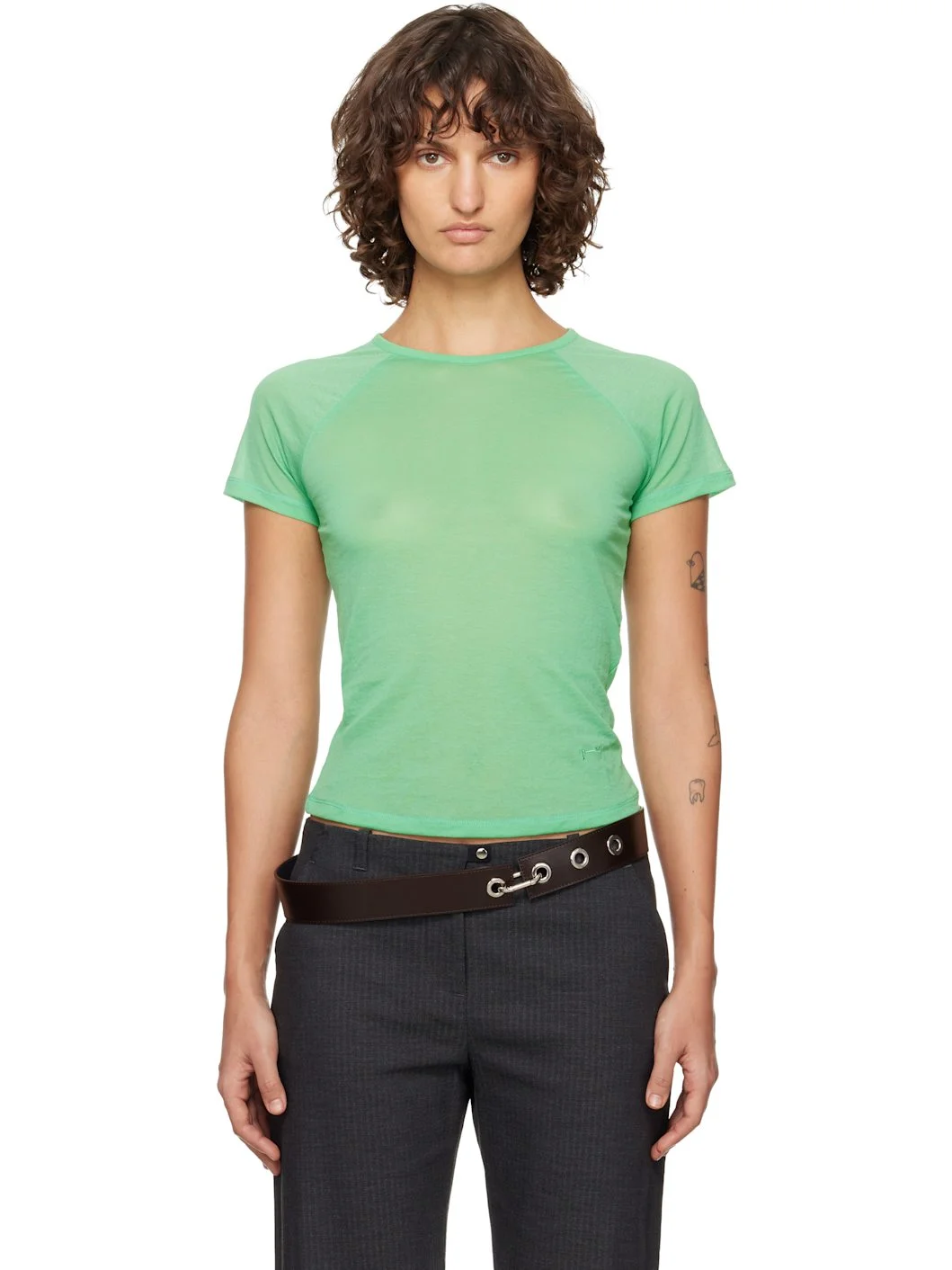 Semi-sheer knit organic cotton-blend T-shirt. · Crewneck · Logo embroidered at hem · Raglan sleeves Supplier color: Green 70% organic cotton, 30% polyamide. Made in Portugal 261648F110016