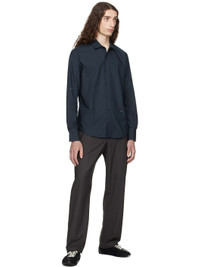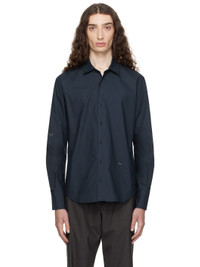 Organic cotton poplin shirt. · Spread collar · Button closure · Loop and D-ring at front and back yoke · Shirttail hem · Pleats at buttoned barrel cuffs Supplier color: Navy 100% organic cotton. Made in Spain 252648M192001
