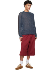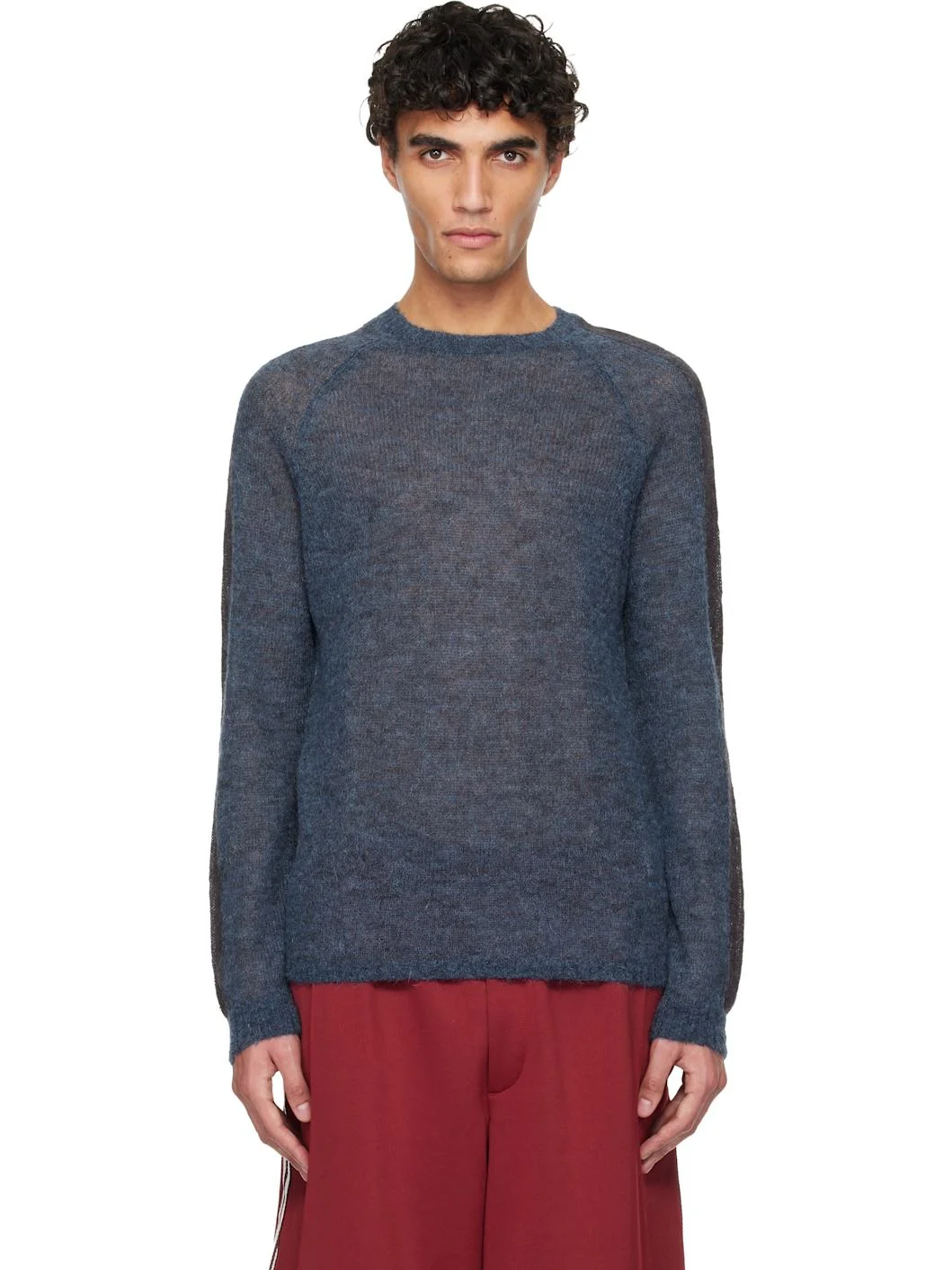 Semi-sheer knit mohair- and alpaca-blend sweater. · Rib-knit crewneck, hem, and cuffs · Stripe at raglan sleeves Supplier color: Navy 35% mohair, 35% alpaca, 30% polyamide. Made in Spain 252648M201003
