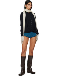Knit extrafine merino wool cardigan. · Mulesing-free wool · Rib-knit crewneck, hem, and cuffs · Button closure · Extended trim at hem converts to halter strap Supplier color: Navy 100% extrafine merino wool. Made in Spain 261648F095000