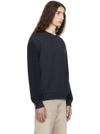 Organic cotton French terry sweater. · Paneled construction · Rib-knit V-neck, hem, and cuffs · Logo embroidered at front · Reversed French terry sleeves · Locker loop at back collar Supplier color: Navy 100% organic cotton. Made in Portugal 252648M206002