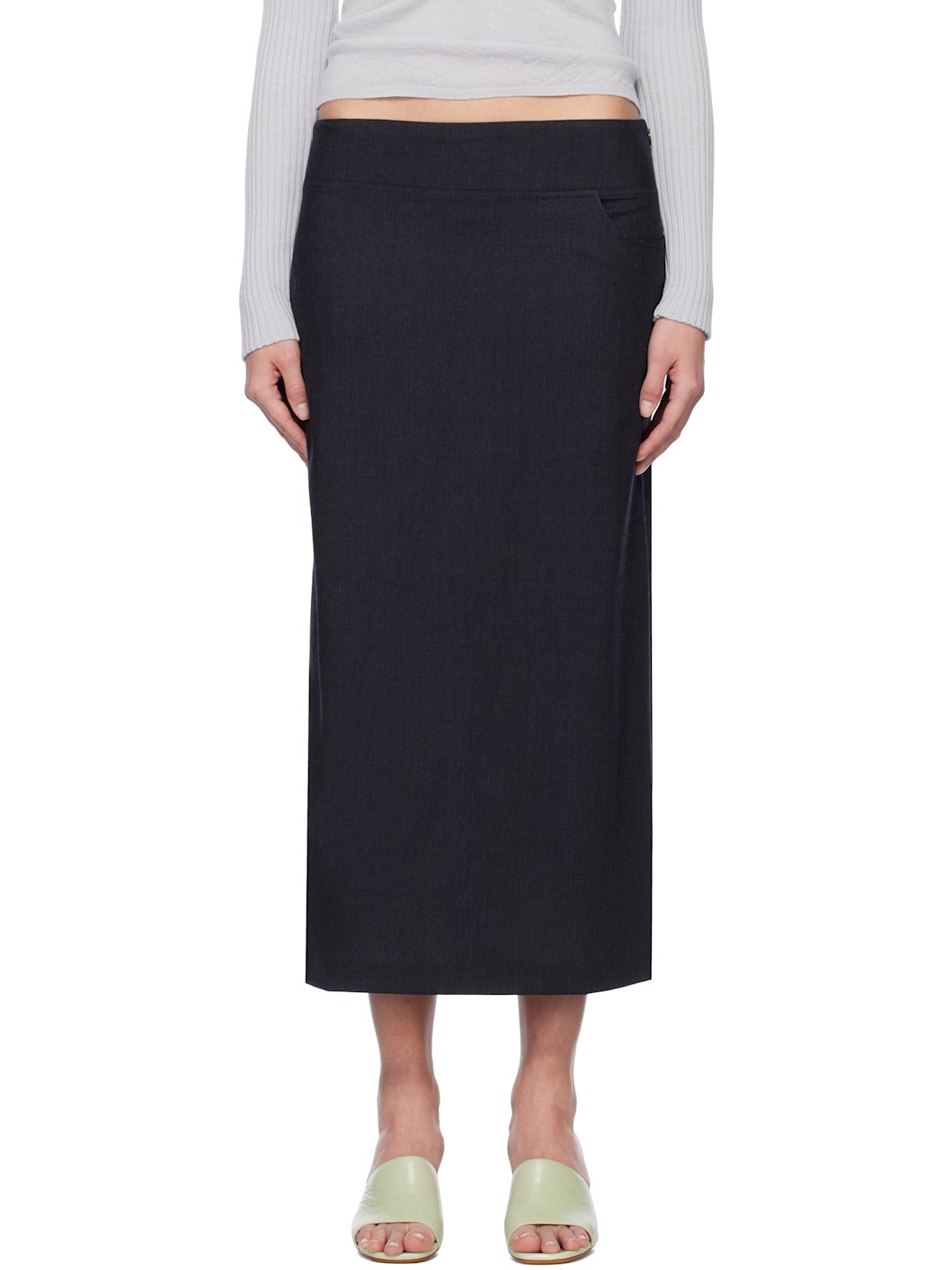 Stretch mulesing-free wool delaine maxi skirt. · Wrinkle-resistant · Low-rise · Two-pocket styling · Concealed zip closure at side · Central vent at back hem Supplier color: Navy 95% wool, 5% elastane. Made in Spain 251648F093001