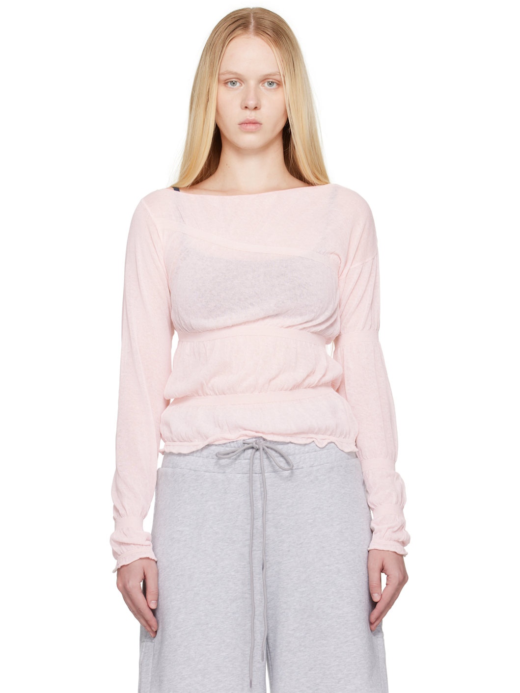 Lightweight knit organic cotton-blend sweater. Rib-knit trim and ruching throughout. · Asymmetrical construction · Boatneck · Lettuce edge at hem and cuffs Supplier color: Pink 91% organic cotton, 9% polyamide. Made in Spain 252648F110000
