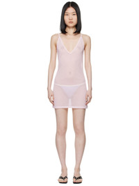 Semi-sheer organic cotton- and nylon-blend jersey dress. Check pattern throughout. · V-neck · Logo embroidered at hem · Fixed spaghetti straps · Low back · Unlined Supplier color: Pink 70% organic cotton, 30% polyamide. Made in Portugal 242648F052004