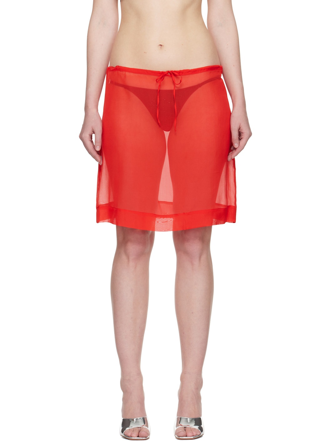 Sheer silk chiffon miniskirt. Drawstring at waistband. Supplier color: Red 100% silk. Made in Spain 252648F090001