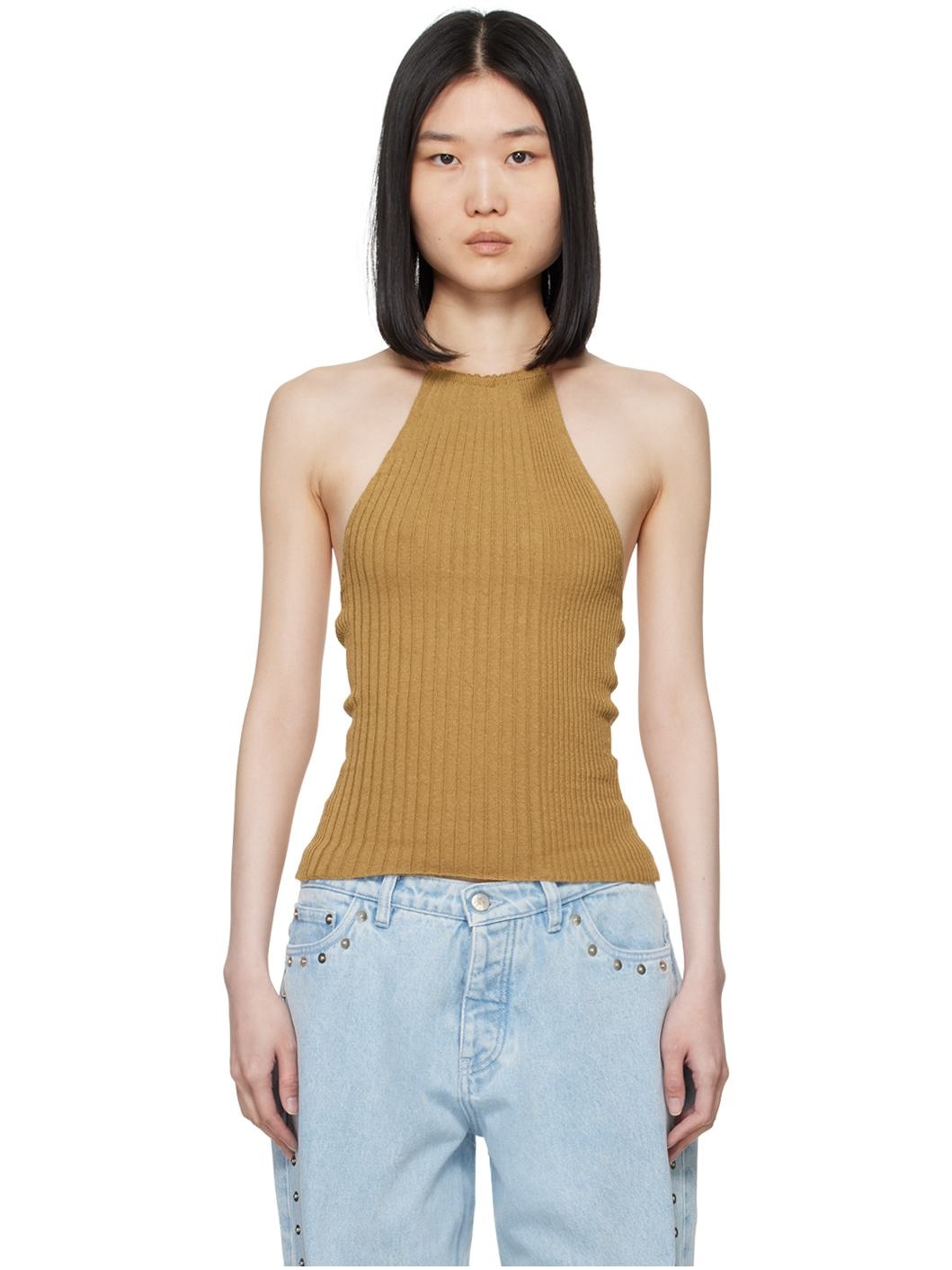 Rib knit linen- and nylon-blend camisole. · Adjustable choker-style metal ring at halter neck · Low back · Raw edge at hem Supplier color: Brown 80% linen, 20% polyamide. Made in Spain 242648F111020