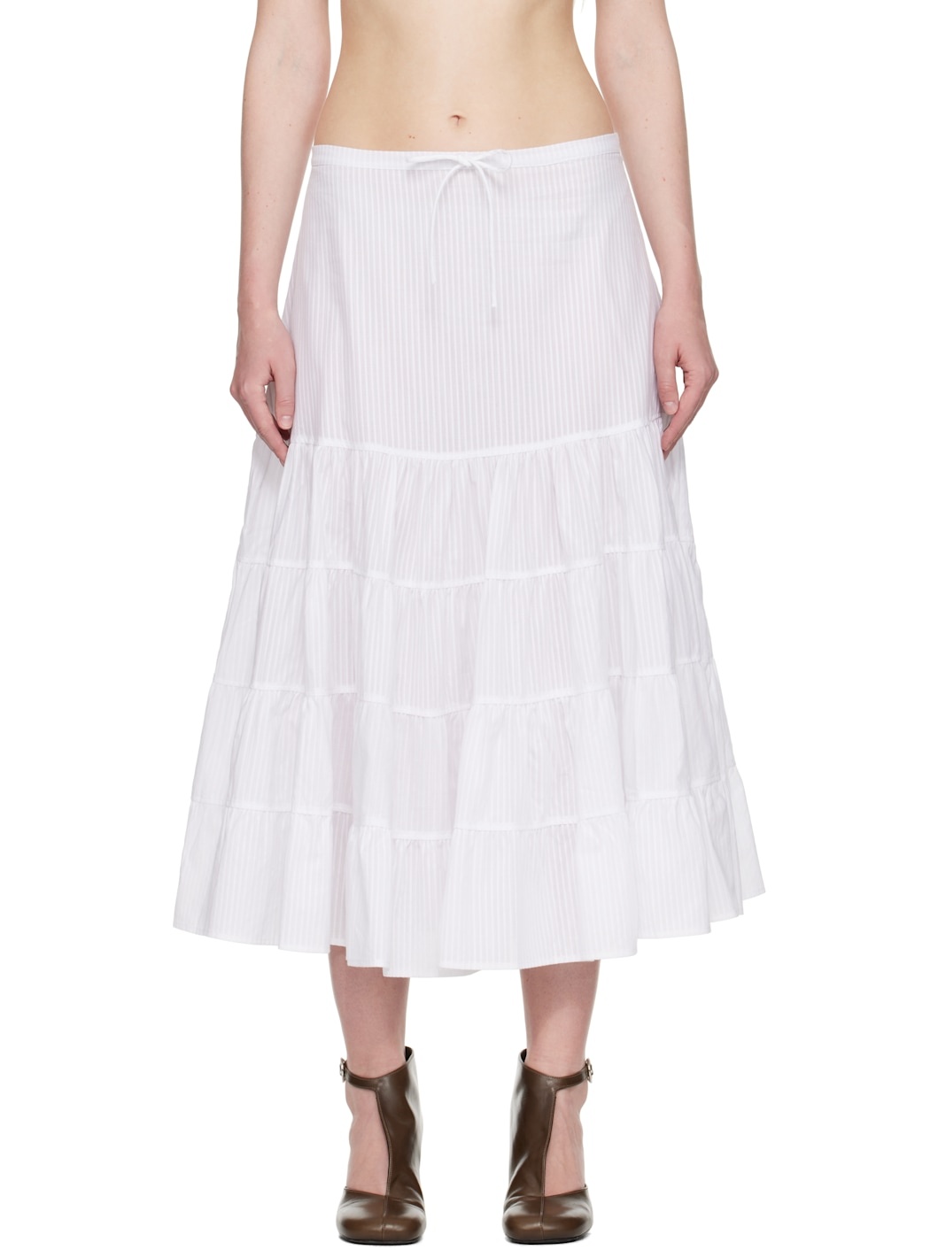 Semi-sheer organic cotton-blend poplin maxi skirt. · Lightweight · Stripes and gathering throughout · Drawstring at waistband Supplier color: White 67% cotton, 33% organic cotton. Made in Spain 252648F093000