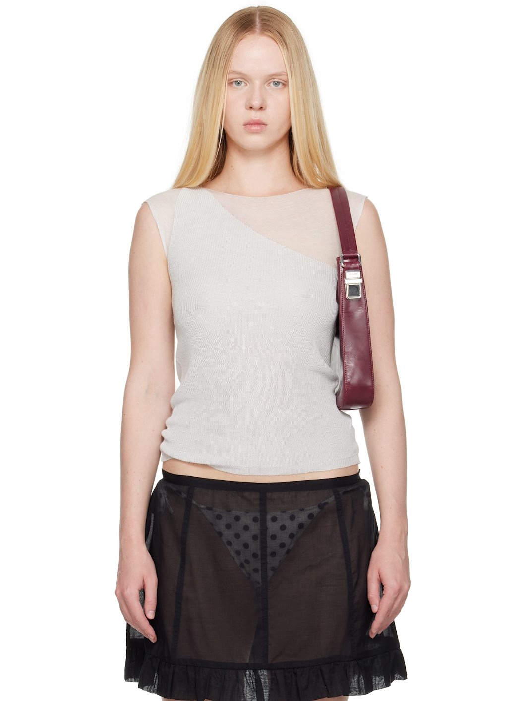 Semi-sheer knit and rib-knit TENCEL™-blend T-shirt. · Asymmetrical construction · Crewneck · Cap sleeves Supplier color: Ecru 87% tencel lyocell, 13% polyamide. Made in Spain 252648F110019