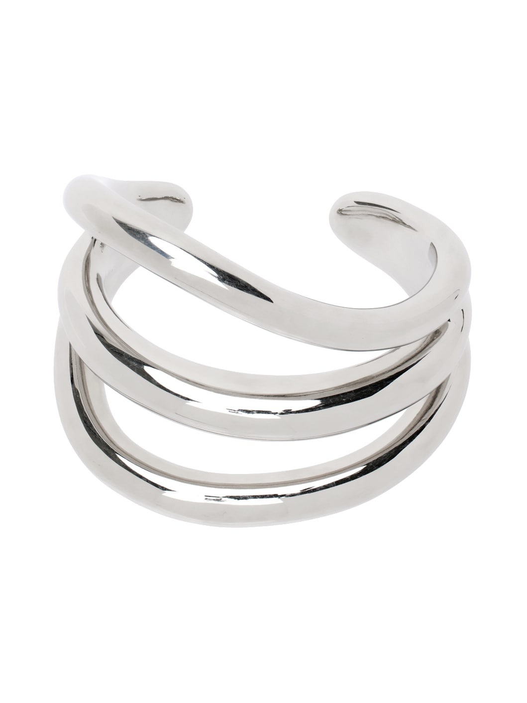 Tiered open cuff bracelet in rhodium-plated copper. - Logo engraved at inner band - H2.25 x D2.75 Supplier color: Silver