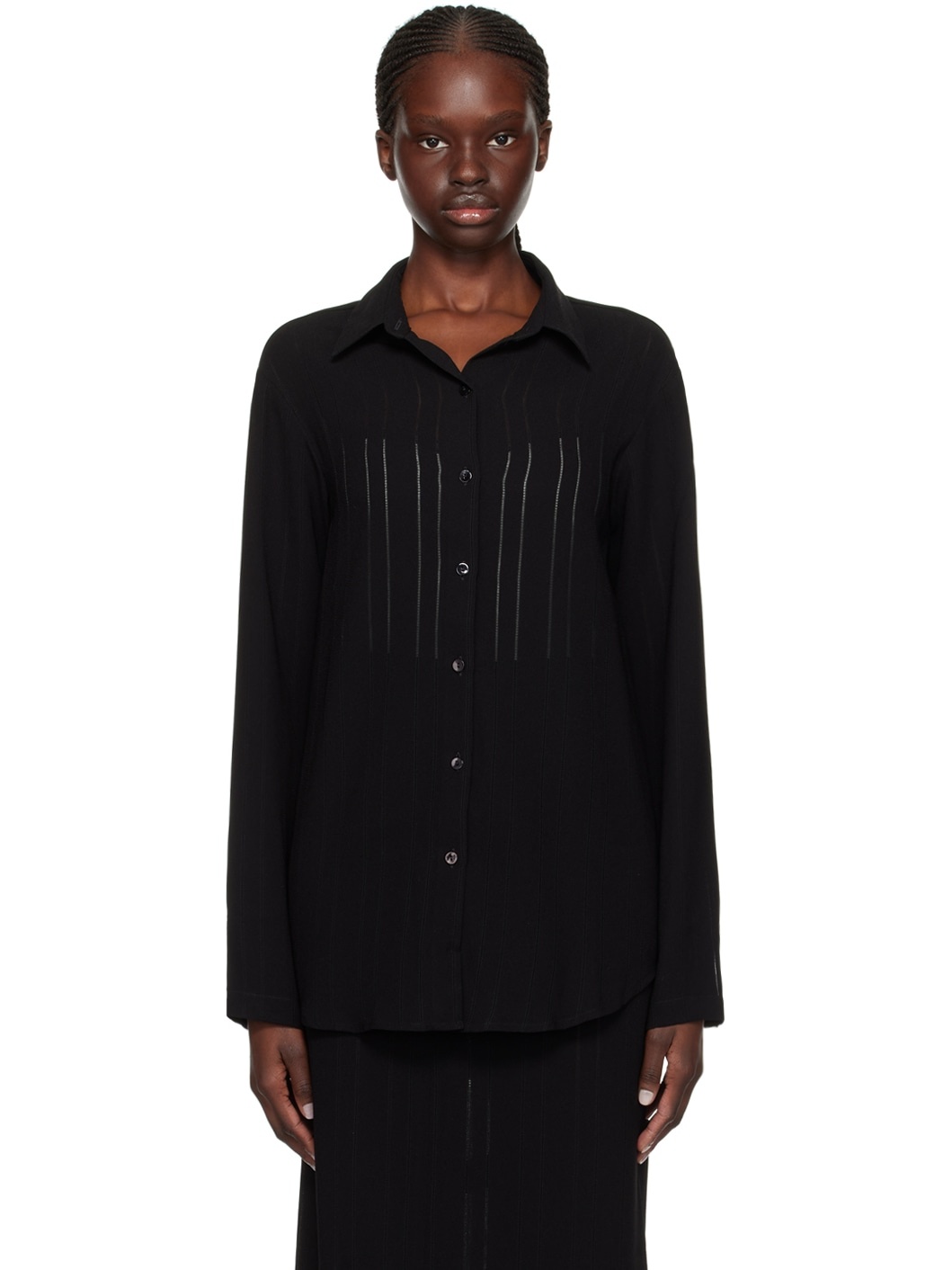 Triacetate- and polyester-blend crepe shirt. Pointelle stripe detailing throughout. · Spread collar · Button closure · Shirttail hem · Vented cuffs Supplier color: Black 68% triacetate, 32% polyester. Made in New Zealand 241438F109001